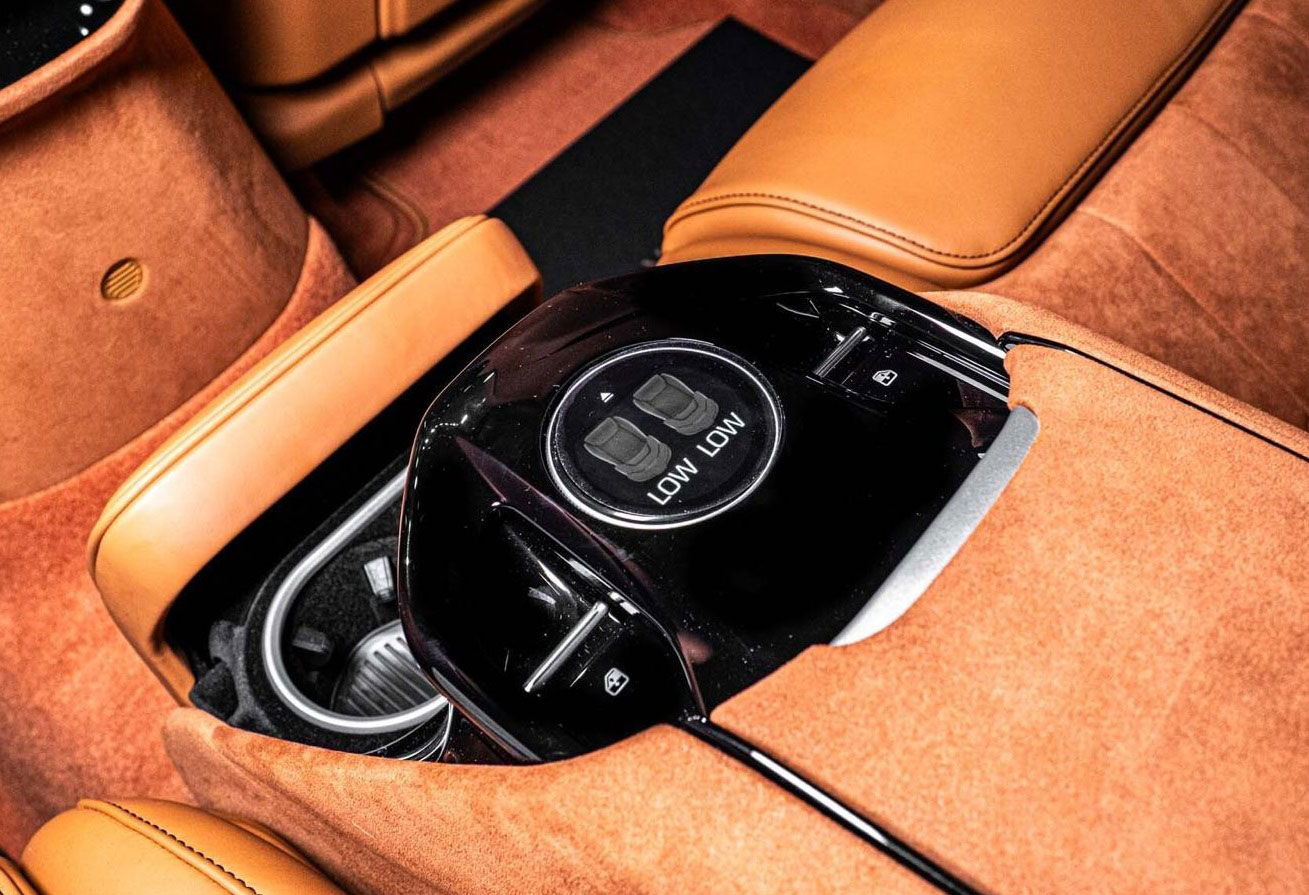 The interior embodies Rolls-Royce’s signature craftsmanship — full-grain leather, polished veneers, and meticulous detailing throughout. The rear-hinged coach doors create a ceremonial entry experience that remains unique within the segment.