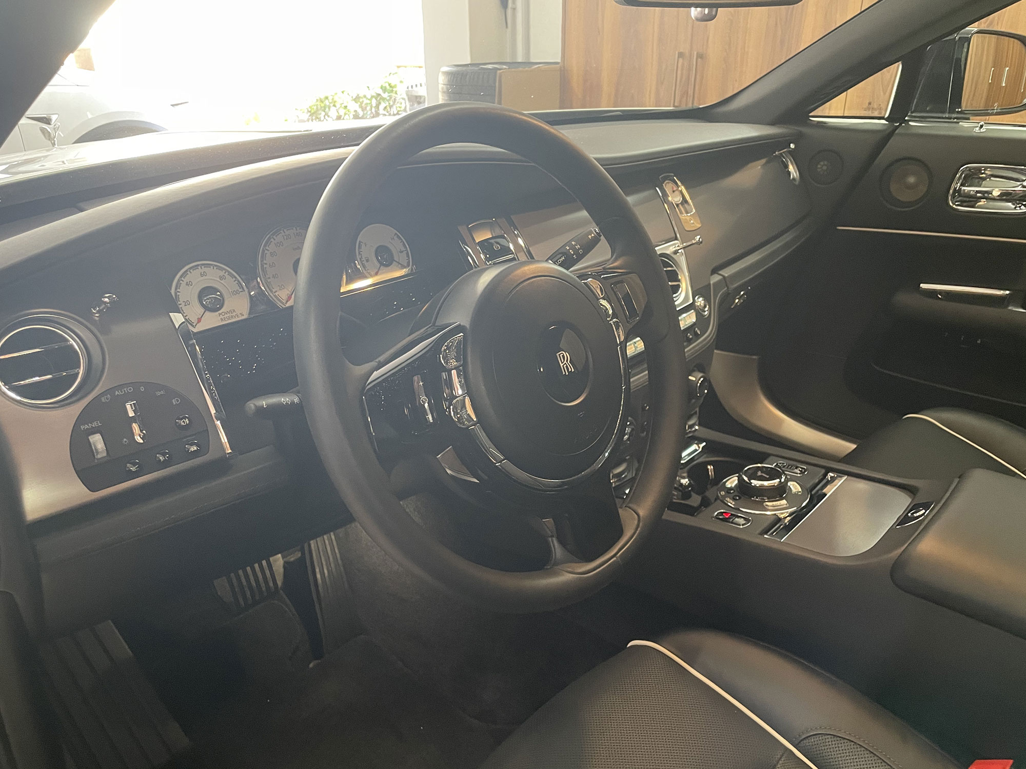 The interior embodies Rolls-Royce’s signature craftsmanship — full-grain leather, polished veneers, and meticulous detailing throughout. The rear-hinged coach doors create a ceremonial entry experience that remains unique within the segment.